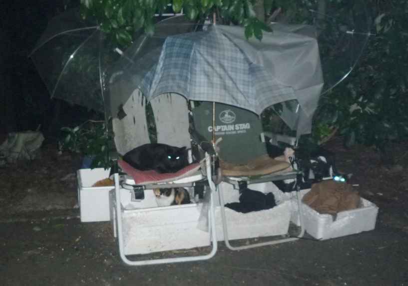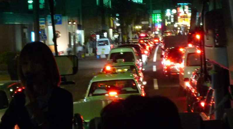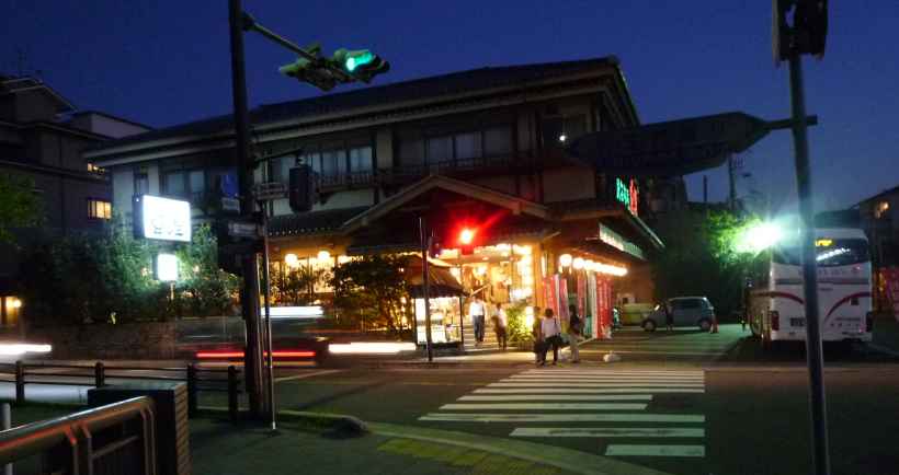 ここに昼間来たときに猫がたくさん居て、餌付けをしている人たちが何人もいました。 夜も猫たちの遊び場、になっているようです。 昼、夜、全ての予定を終了しました。 途中、ホテルや駅で客を降ろしながら京都駅へ戻ります。 京都駅からJRで石山へ戻り、石山からはバスで自宅へ帰ります。 今日は1日、朝から夜まで、しっかり楽しめました。