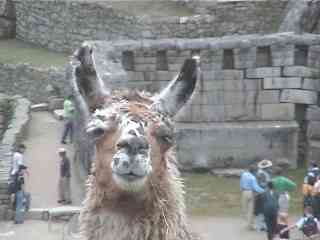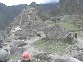 リャマの頭の辺りに見えるのが遺跡の中央で最も高い位置にある