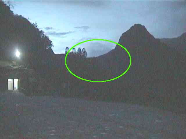 西の空の薄明かりに影のみを見る事が出来るマチュピチュとワイナピチュ山です。