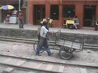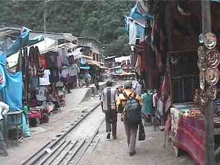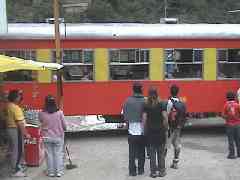 アグアスカリエンテスは小さな駅なので、観光列車が止まると混乱します。そこでそこから徒歩数分(2〜300m?)手前に観光列車が止まるための駅を新設してあります。なお、アグアスカリエントスの先に『マチュピチュ』と言う駅が有る、という噂を聞きました。