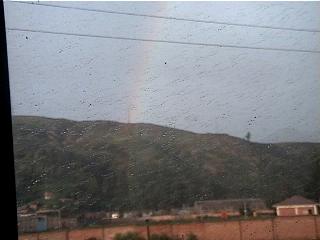 峠に近づくと虹が見えます。峠で20分ほど停車していました。
