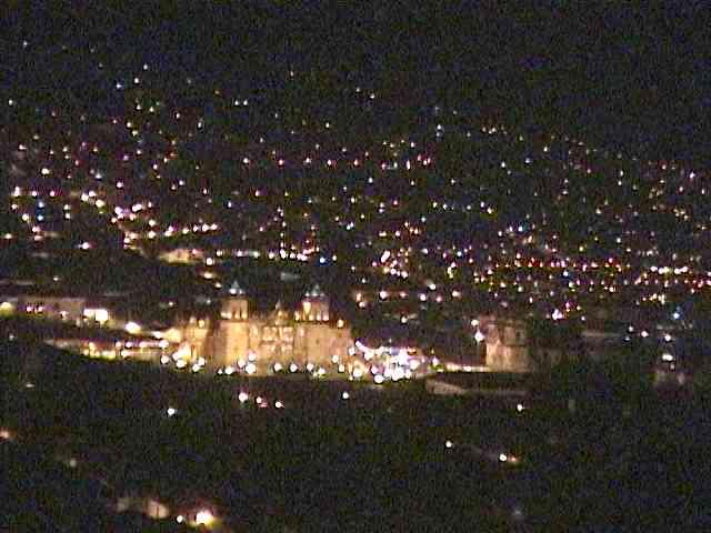 しばらく止まっていましたが、ようやく動き出しました。峠を越えると眼下にクスコ市街の灯りが見えてきました。