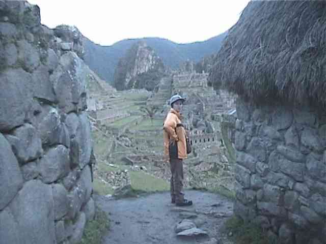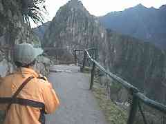 この写真の正面にある山(岩?)がワイナピチュと言う山です。