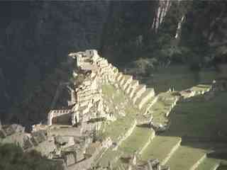 太陽の門から見下ろすマチュピチュの遺跡と