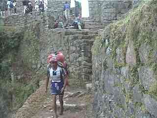 地元のお兄さんが荷物を担いで運んでいます。この人達は2〜3人で歌うように話しをしながら走って行きます。ヒエ〜、す、凄すぎるぅ。あたしにゃ、あんな真似は出来ないよ〜