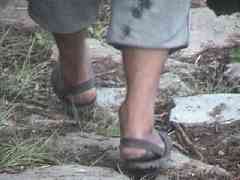 『ほいほい』と歌いながら(話しをしているのだと思いますが)走り回る現地の人は裸足か、このようなサンダルで山道を走り回っています。